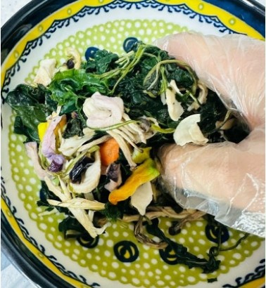 - 불린 건나물의 물기를 꼭 짜낸 다음, 들기름을 넉넉히 둘러 조물조물 무칩니다.