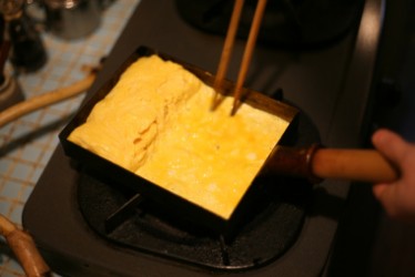 - 계란물 붓기 예열된 팬에 계란물을 얇게 부어줍니다. 계란물이 익기 시작하면 오른쪽에서 왼쪽으로 조심스럽게 말아줍니다. 이 과정을 여러 번 반복해 두툼한 계란말이를 만듭니다. 계란을 부치고 마는 과정에서 식용유가 부족해지면 조금씩 더 추가해줍니다.
