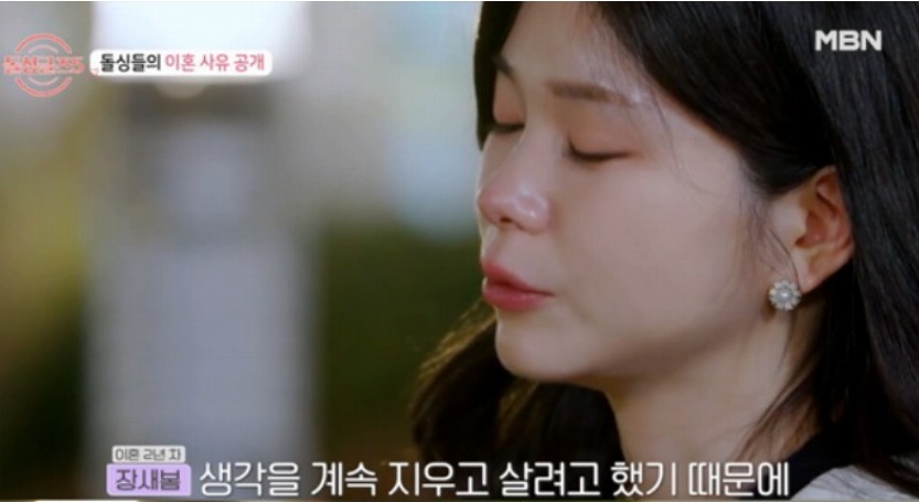 이혼 2년차인 장새봄 씨는 쌍방 갈등 끝에 이혼을 선택한 것이 아니라 전혀 예상치 못한 상황에서 이혼을 통보받았다고 밝혔습니다. 그녀는 이혼 사유를 말하기 전에 눈물을 펑펑 쏟으며, "생각을 계속 지우고 살려고 했다. 다시 생각하려고 하니까 눈물이 나온다"고 말했습니다.