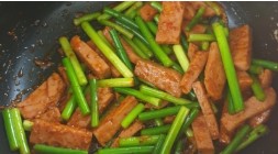 - 마늘쫑을 물에 데쳐 아삭함을 살린다.
