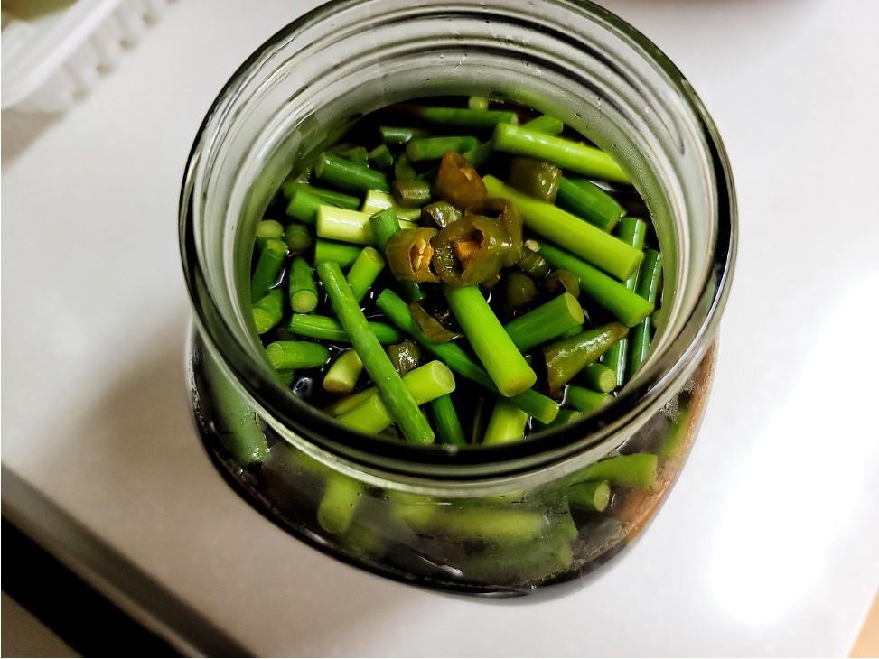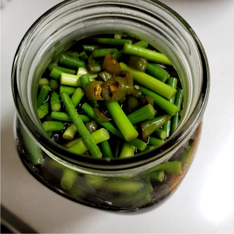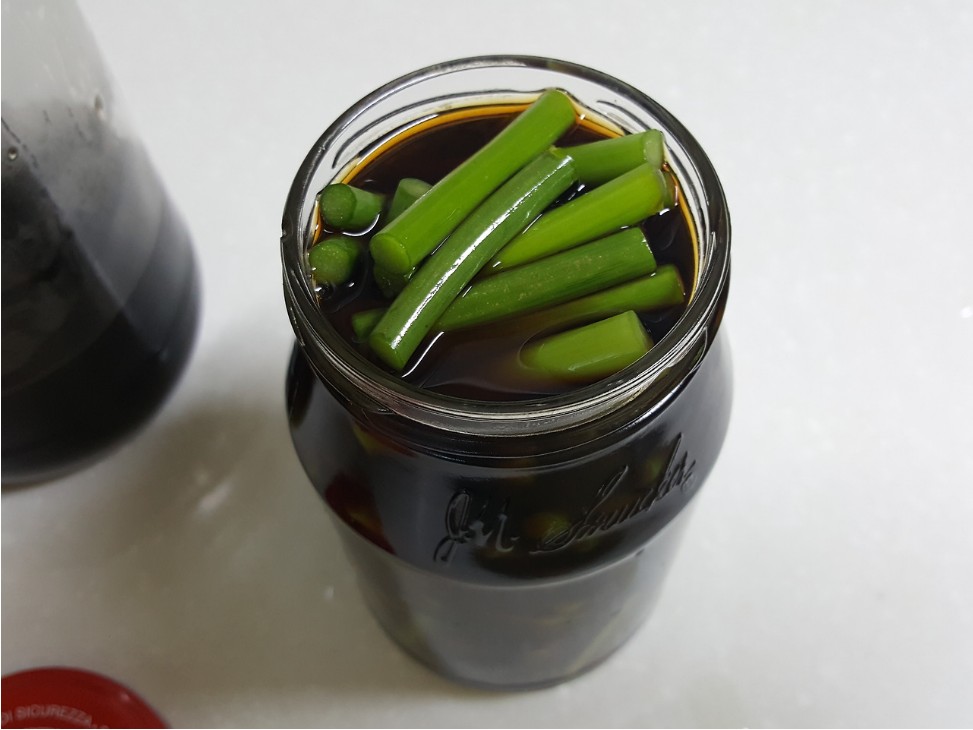- 잘 숙성된 마늘쫑 장아찌는 살짝 갈색이 돌면서 푸른기가 없어집니다.