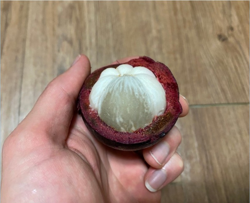 망고스틴은 적당한 달콤함, 부드러운 식감, 터지는 과즙, 씹을 때마다 느껴지는 망고스틴 향이 일품입니다. 투명한 과육은 당분이 몰려 생기는 현상으로, 안심하고 먹어도 됩니다.