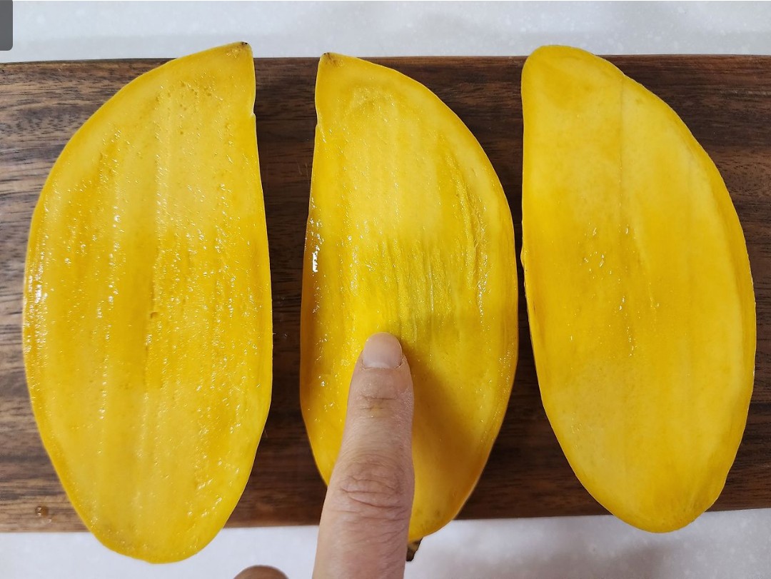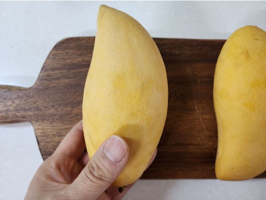 - 망고는 겉면이 노랗고 잘 익은 것을 선택합니다. 푸르스름한 망고는 더 두고 먹습니다.