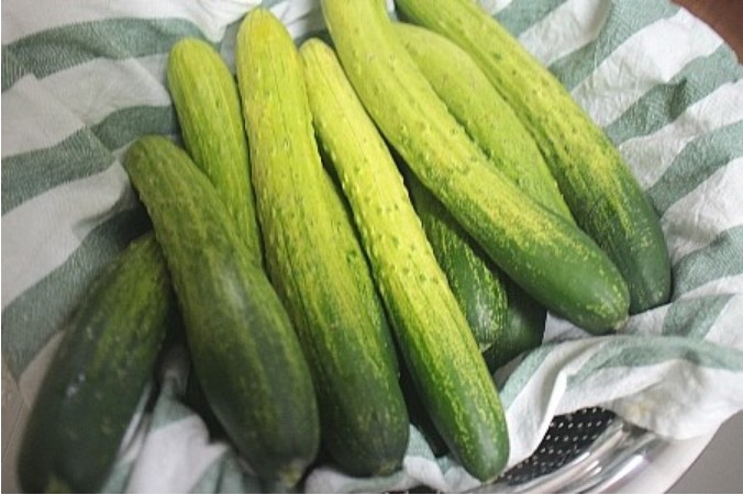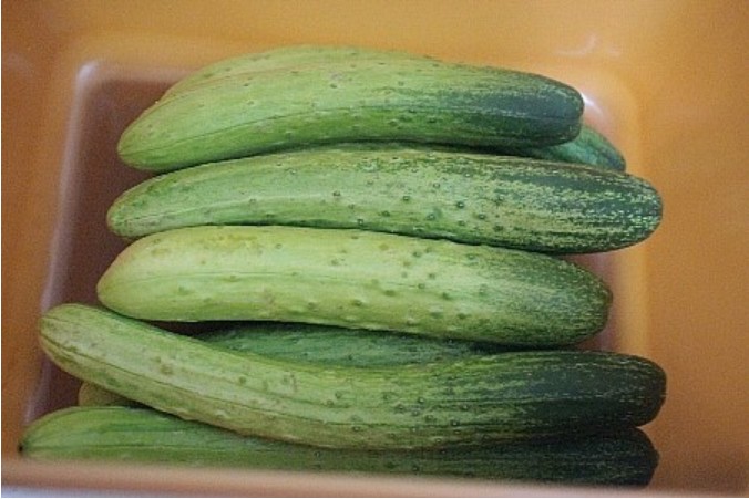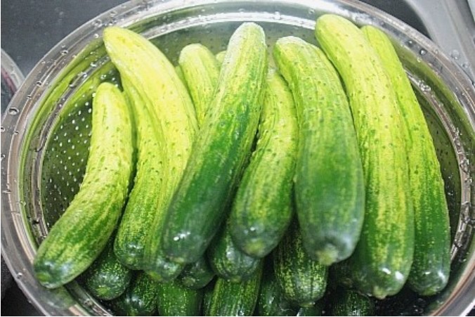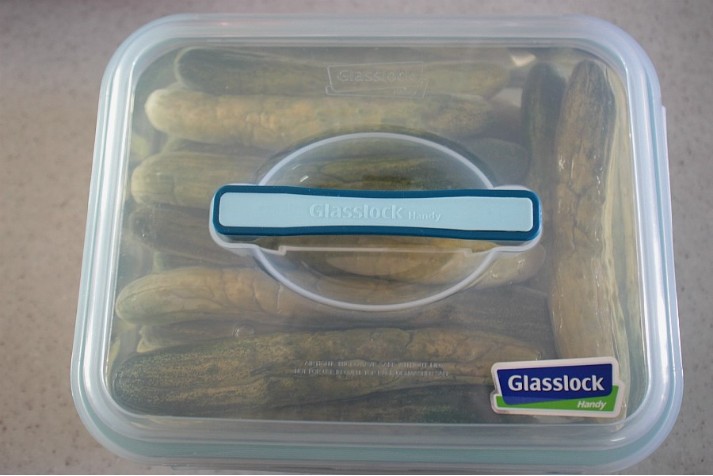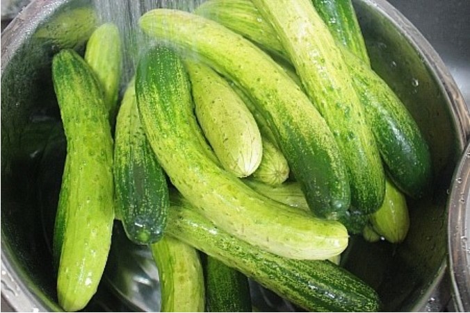 - 깨끗이 손질한 오이를 담을 통이나 비닐봉지에 차곡차곡 넣습니다.