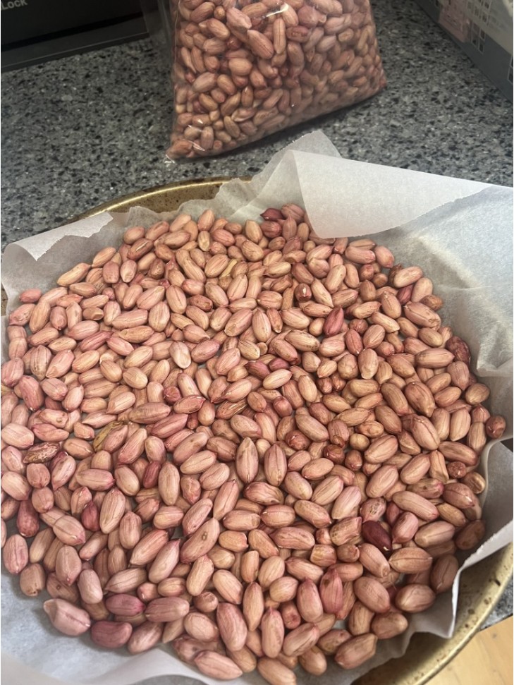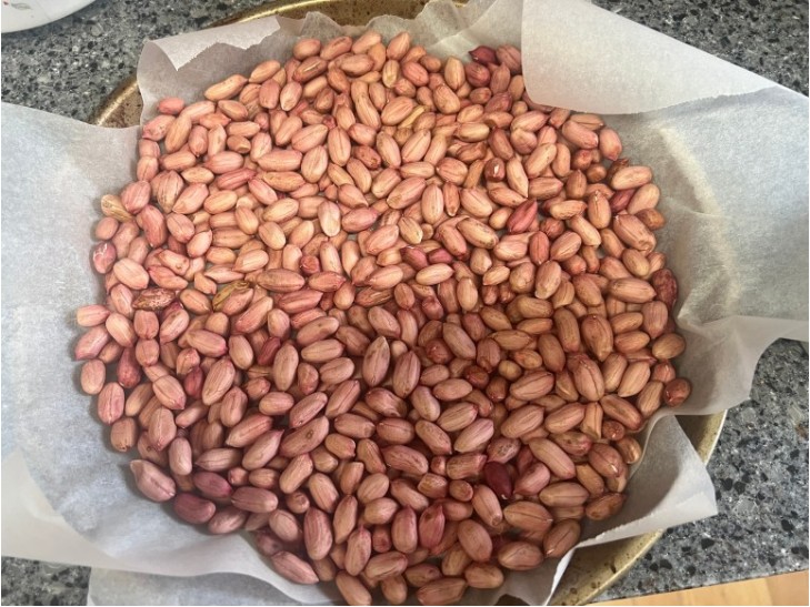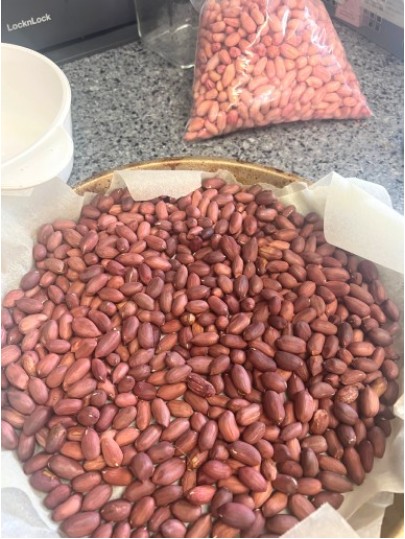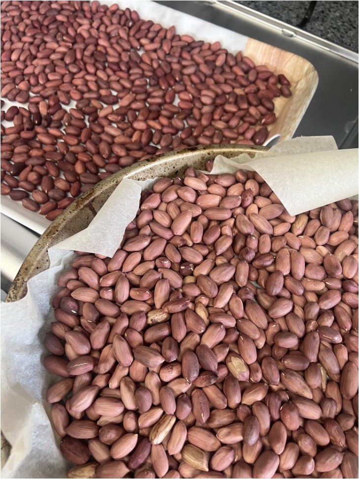 - 1차 굽기: 예열된 오븐에 땅콩을 넣고 10분간 굽습니다.