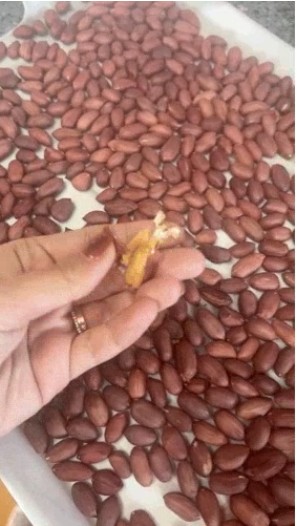 - 땅콩이 내는 소리가 멈추면 온도가 식은 것입니다. 뜨거울 때는 껍질이 잘 안 까질 수 있지만 식으면 쉽게 벗겨집니다.