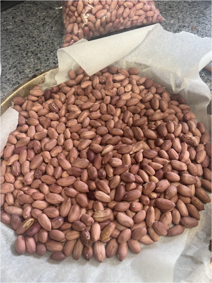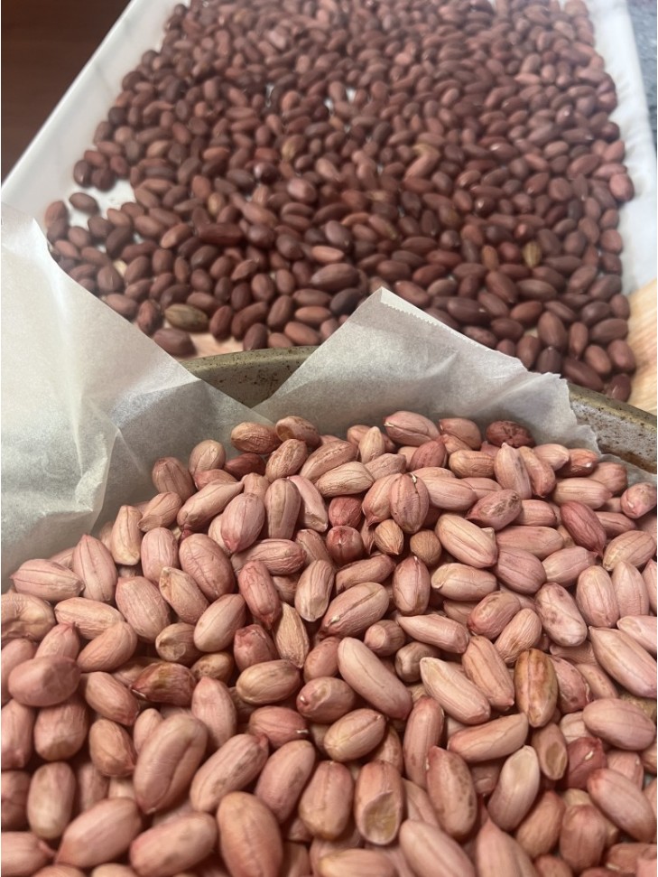 - 땅콩 준비: 땅콩을 오븐 팬에 고르게 펼쳐 놓습니다.