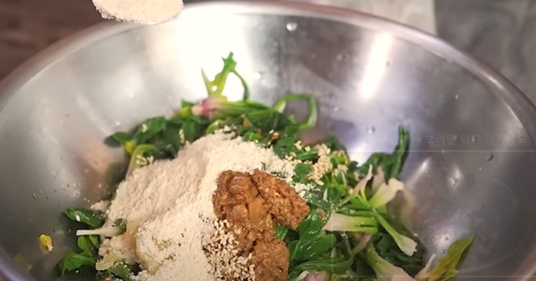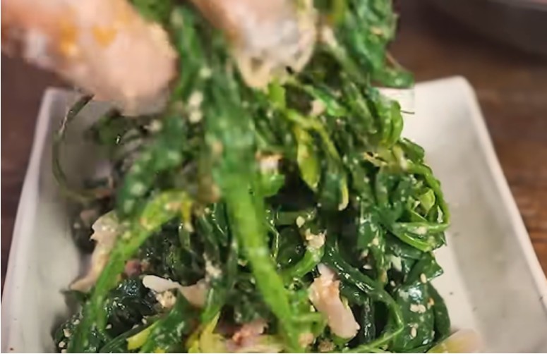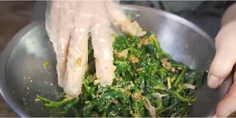 - 데친 시금치를 준비된 양념장에 넣습니다.