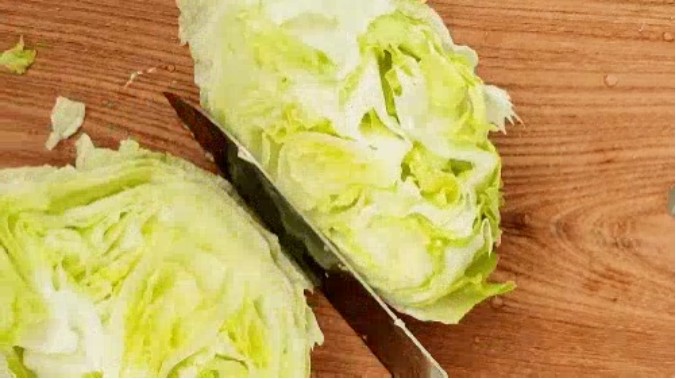 - 반 자르기: 양상추를 반으로 자릅니다.
