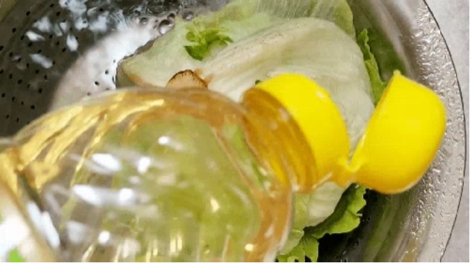 - 식초 세척: 베이킹소다로 씻은 양상추를 건져내고 다시 깨끗한 물에 식초를 한 스푼 넣어 1분 정도 담가둡니다. 식초는 세척 후 살균 효과를 줍니다.