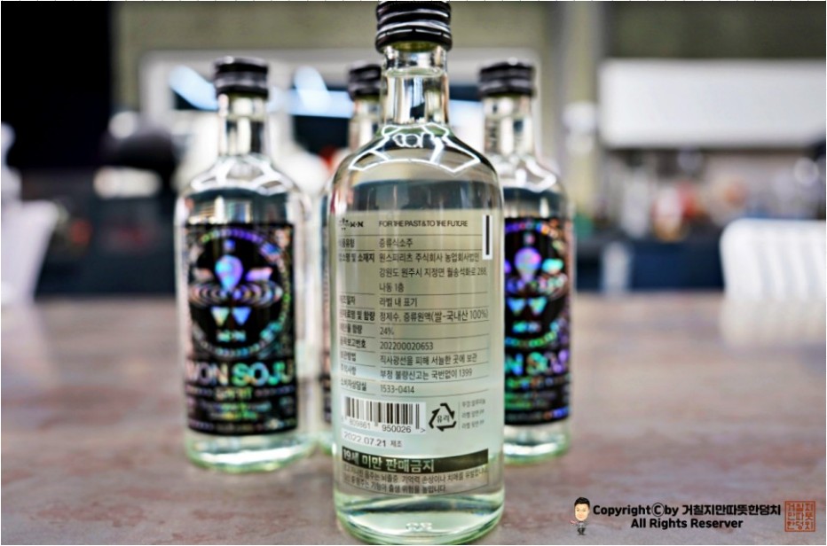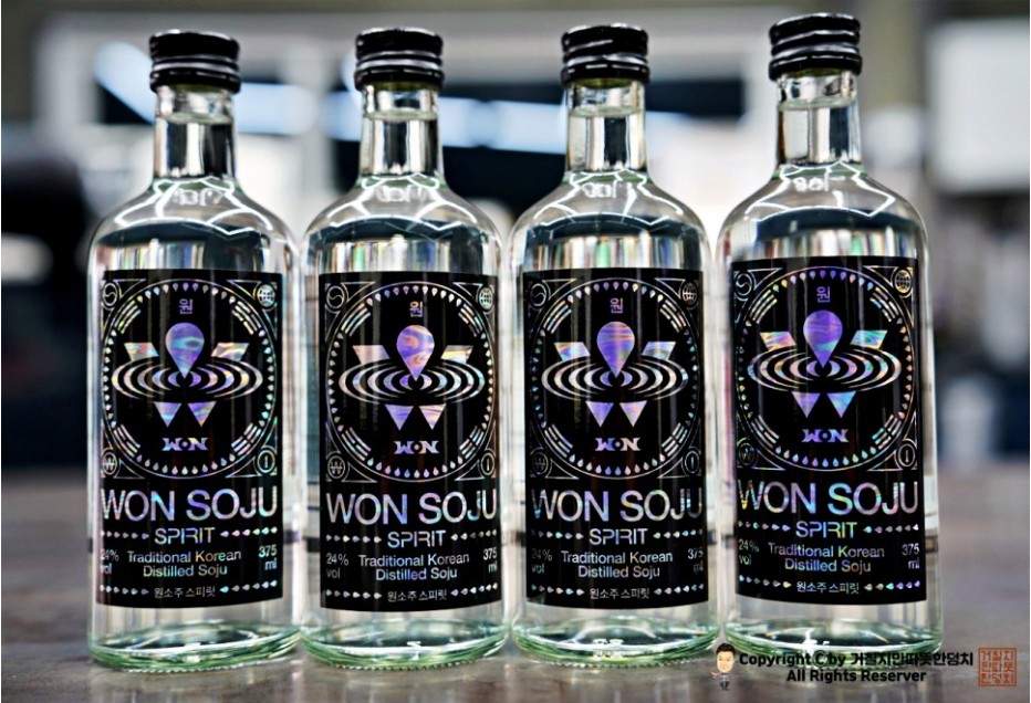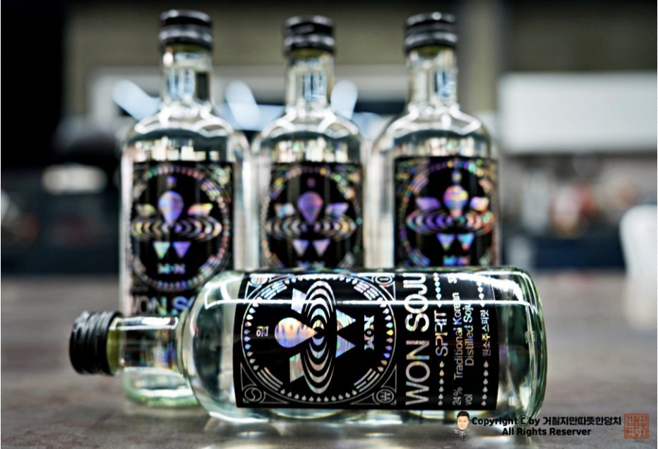 원소주 스피릿은 24도수의 증류식 소주로, 곡류의 풍미가 살아있어 흔히 먹는 희석식 소주와는 깊이가 다릅니다. 깔끔한 맛과 감칠맛이 특징으로, 목넘김 후에도 깊은 여운을 남깁니다.