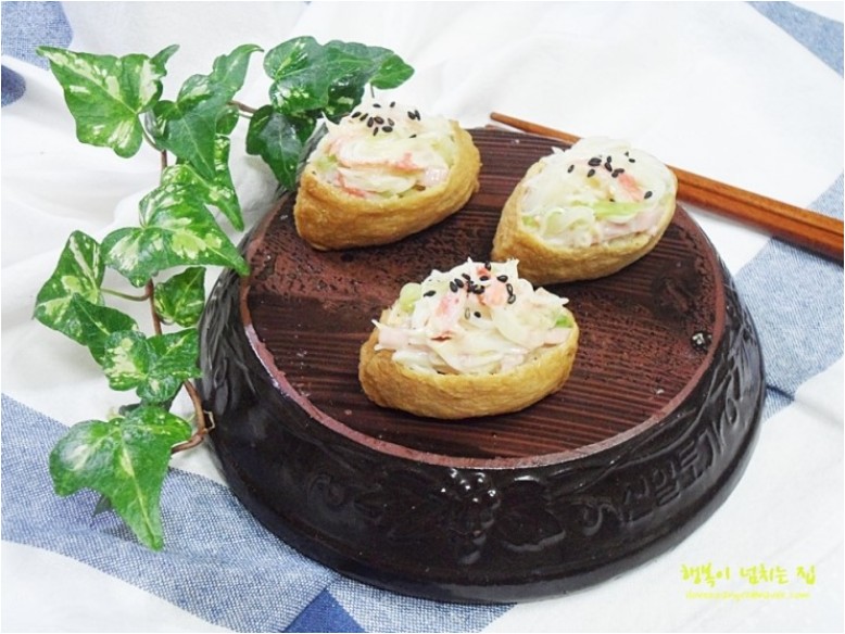 - 고소한 대게살 유부초밥: 대게살을 올려 고소한 맛을 더할 수 있습니다.