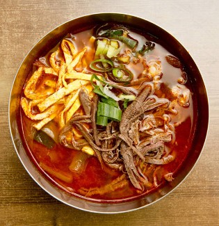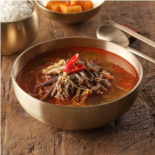- 완성된 육개장을 그릇에 담아내고, 뜨겁게 서빙합니다.