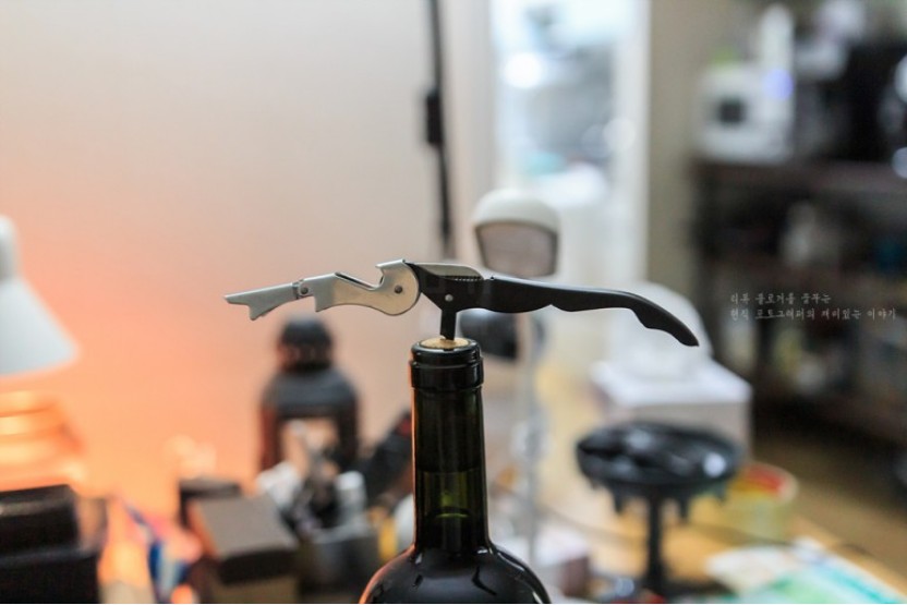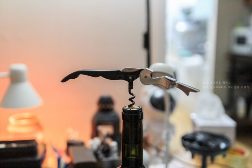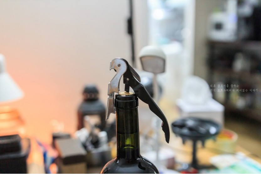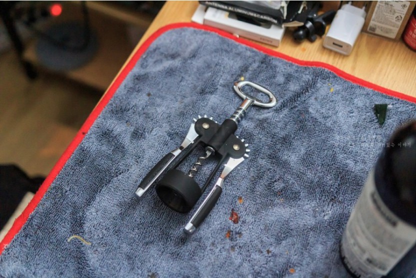 - 코르크 오프너 사용: 코르크 오프너를 준비합니다. 흔히 세트상품에 포함된 오프너를 사용합니다.