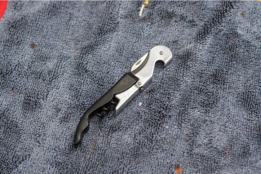 특이하게도 이번 와인병은 지렛대 원리가 잘 작동하지 않아 코르크 마개가 부서졌습니다. 부서진 코르크는 와인병 안으로 들어갈 수 있지만, 극단적인 조치로 다른 기구를 사용해 깔끔하게 따냈습니다.