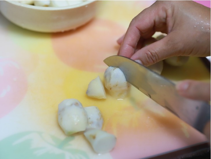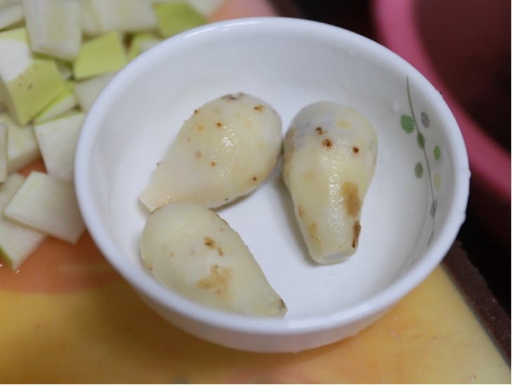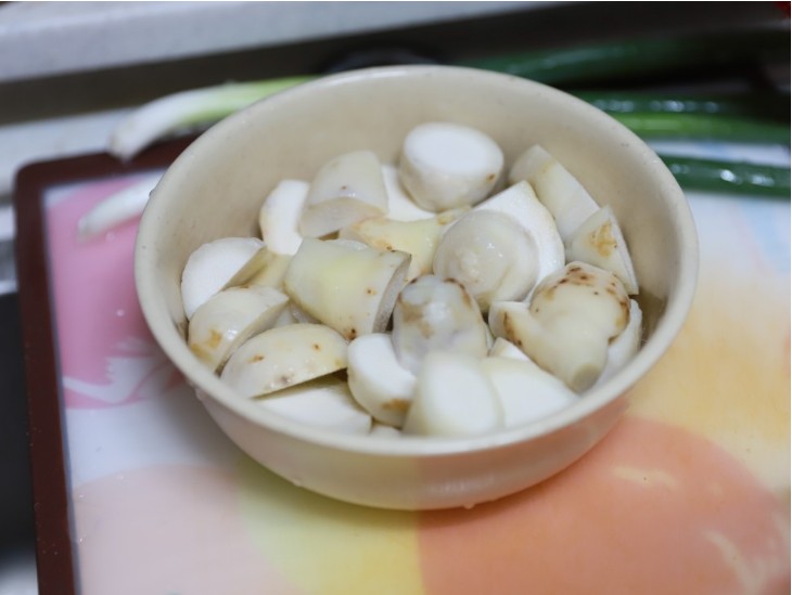 - 토란: 먹기 좋은 크기로 2~4등분합니다.