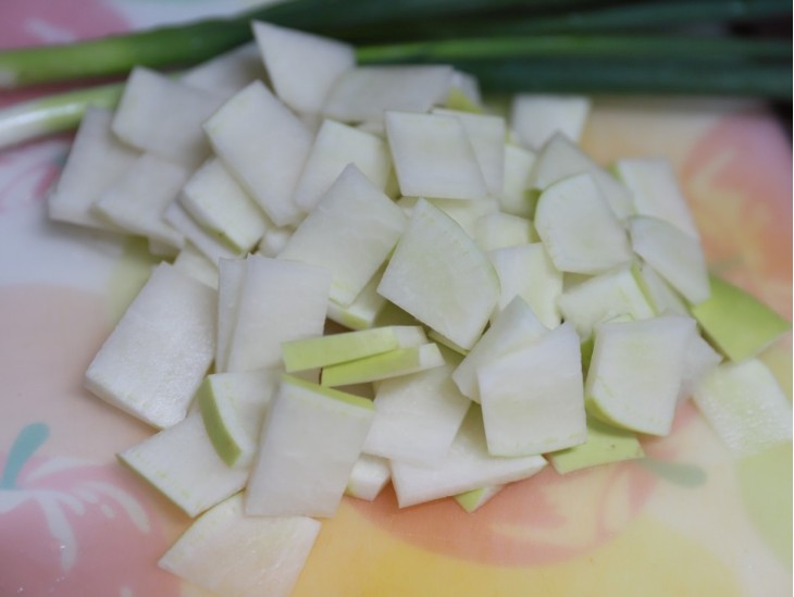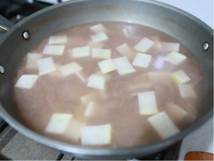 - 무: 1~2cm 두께로 나박나박하게 썰어줍니다.