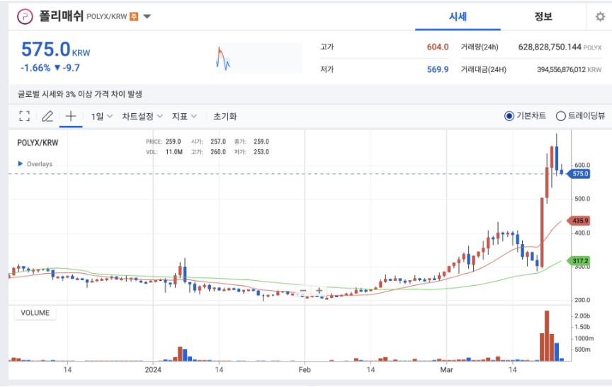 폴리매쉬 코인 거래소 및 거래량