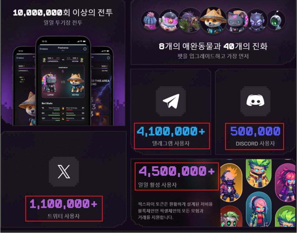 픽셀버스는 전체 포인트의 25%를 에어드랍으로 예고하고 있습니다. 현재 텔레그램을 통해 일일 활성 유저 수는 450만 명을 넘고 있으며, 다양한 소셜 미디어 플랫폼에서도 높은 활동성을 보이고 있습니다. 이는 블록체인 프로젝트에서 매우 중요한 데이터로, 커뮤니티 규모와 일일 활성 유저 수는 프로젝트의 성공 가능성을 높여줍니다.